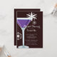 Modern bridal shower invitation featuring a purple martini glass with white snowflakes. Stylish wedding shower invite for a winter, christmas, holiday time bridal shower.