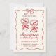 Celebrate the season in style with this festive Christmas cocktail party invitation. Featuring hand-drawn red cocktail glasses tied with bows and framed with a delicate border, this elegant cream-and-red design sets the perfect tone for your holiday gathering. Personalise with your event details to create a warm, welcoming invite your guests will love.