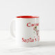 Coffee mug shown in white with a red interior, with a holiday candy cane mouse. Text says Cocoa for Santa's helper.