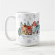 Holiday Coffee Mug - with a picturesque Christmas street. Watercolor design with soft colours of blue, yellow, red, and green. Enjoy this Christmas / Holiday mug all season!
