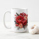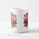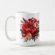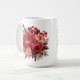 Holiday coffee mug is shown with a lovely red floral print.