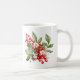 Holiday coffee mug is shown with a lovely red berries floral print.
