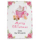 This fun and festive gift bag can be personalised with your name, relation or title. It features a watercolor cup of hot cocoa and whipped cream, gingerbread cookies and beautiful pink poinsettia flowers. The text combines handwritten script and sans serif fonts for a stylish and modern look. This is perfect for Christmas gifts and party favours.
