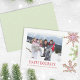 This design features holiday Christmas modern simple cute, minimalist snowflake red and green, clean trendy photo,1 one family picture, a happy holiday unique cool whimsical, simple and minimal, a modern elegant simple trendy, with simple family photo traditional, winter seasonal design snow, a Christmas holiday photo cards
