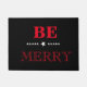 Welcome doormat shown in black with a holiday Be Merry print. Customise this item or buy as is.