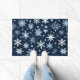 This holiday doormat is shown with a Christmas holiday snowflakes print.