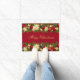 Doormat shown with a deep red background and a pretty festive holiday Christmas garland print.