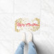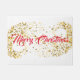 This Holiday doormat is shown in a festive Merry Christmas with golden stars print.
