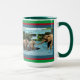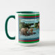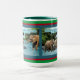 Beautiful Holiday Elephant Scripture Mug of a colourful, detailed scene with a concerned mother elephant and a tusked juvenile elephant helping a timid baby elephant cross a clear blue river that is lined with plush green trees. This scene accompanies the Bible verse Luke 6:31, "Do onto others as you would have them do onto you." This Mug makes a wonderful gift or can be used to remind us of the Word of God.