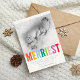 A super fun card design featuring the quote "MERREIST" in colourful type. Maximum area to display your beautiful family too!