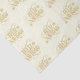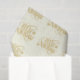 This tissue paper is printed all over with a holiday gold color Feliz Navidad with small snowflake print on an off white color background.