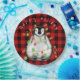 Cute Holiday Penguin wrapped up in Red and green festive Christmas lights. Buffalo plaid pattern- Original illustration by H Cooper-