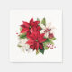 Party paper napkins are shown in the white cocktail size with a watercolor print of a lovely red poinsettia floral mix.