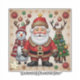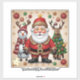A festive design with a snowman, Santa, deer, and a decorated Christmas tree, set against a golden, dotted floral background, evoking warmth and holiday magic. "Original Image was generated by Meta AI. AI generated artwork. Licensed under CC BY-SA 4.0."