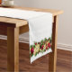 This table runner is shown with a white background colour and has a pretty festive holiday garland print.