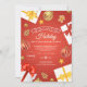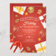 A festive gift exchange party invitation with a red background, packages with ribbons and holiday elements. (<a href="https://www.freepik.com/free-photos-vectors/brochure">Brochure vector created by freepik - www.freepik.com</a>). <br/><br/>The card is easy to customise with your wording, font, font colour, paper shape options and choice of six paper types.<br/><br/>Not exactly what you're looking for? All our products can be custom designed to meet your needs at no extra charge.<br/><br/>Simply contact us at heartfelthelper@gmail.com.<br/><br/>Coordinating products available: Just ask us!