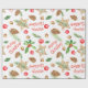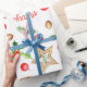 Holiday Gift Wrap Merry Christmas Stars-watercolor star design with holly and pine