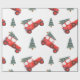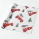 Holiday Gift Wrap Red Car and Christmas Tree-watercolor red car and pine tree design