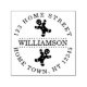 A circular personalised self-inking stamp design featuring two gingerbread maen above and below your family name and encircled by your address details. Ideal for adding an extra hand stamped touch to your holiday cards.