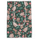 Festive Christmas wrapping paper design featuring Holiday icons gingerbread man, Christmas tree, ornaments, and holly leaves