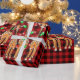 Holiday Giraffes, twinkle red, green lights, plaid Wrapping Paper