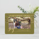A sophisticated gold and green ribbon overlaid with a framed photo window on an olive green background creates this stunning design.
