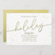 Set the tone for your holiday party with these elegant gold invitations, featuring modern calligraphy script and refined typography. Designed with a chic gold gradient, this card combines simple, minimalist style with timeless sophistication. Perfect for seasonal gatherings, it offers a basic invitation format that’s both versatile and stylish, making it easy to personalise while adding a touch of festive elegance to your holiday celebration.