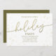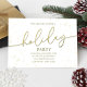 This design features a Christmas gold calligraphy script party invitation with a simple minimalist modern elegant layout, a scannable QR code for your party event website pate details and information, perfect for any holiday party or festive celebration, a trendy stylish golden typography, a gold gradient font text lettering, a stylish elegance gold glitter, great for celebrate family friends parties, a simplistic contemporary Christmas basic, a stylish Christmas holiday invite, a horizontal landscape invitation template