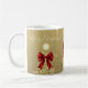 Elegant Merry Christmas / Happy Holidays mug with gold trees and bows.
