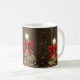 Elegant Merry Christmas / Happy Holidays mug with gold trees and bows.