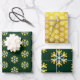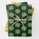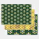 Holiday gold foil white green snowflake pattern wrapping paper sheet