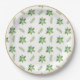 This paper plate features lots of Christmas greenery and berries on a white background with a gold border.