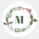 Holiday Greenery & Berry Initial Envelope Seal, Classic Round Sticker