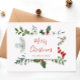 A beautiful watercolor greenery and red berry arrangement frames your message on this standout holiday postcard. The card has simple, elegant typography, and there is plenty of room to personalise.