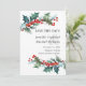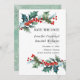 A lovely contemporary wedding Save the Date card for winter weddings featuring cheerful holly branches in watercolor hues of red, green and aqua teal. The reverse side of the card has a matching abstract pattern in watercolor wash with a snowy effect. Personalise the text with your details by editing the sample text shown in the design template. This distinctive Save the Date card is a nice choice for weddings during the holiday season or throughout winter.