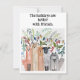 Holiday greeting card with watercolor and ink. Furry forest animals in the snow with the text "The holidays are better with friends."