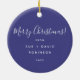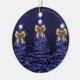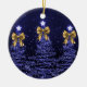 Elegant Merry Christmas / Happy Holidays Festive Ornament, Navy Blue Trees with bows.