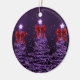 Elegant Merry Christmas / Happy Holidays Festive Ornament, Purple Trees with bows.