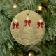 Holiday Greetings Gold Christmas Trees w/ Red Bows Ceramic Tree Decoration