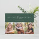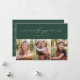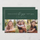 This elegant photo card features a Holiday Happiness type treatment in white against a green background with three vertical photos. The back is a coordinating striped green. This simple family holiday photo card is the perfect way to send greetings to family and friends.
