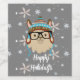 Festive Christmas design features Hipster Llama with glasses and winter hat ready for the holidays! Snowflake background with white customisable "Happy Holidays" text