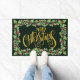 Festive Christmas holiday doormat has Merry Christmas in gold in the middle and holly and red berries all around the edge. The black background makes the holly and berries and the typography really POP! This Christmas holiday outdoor mat is such a fun way to make visitors feel right at home when they come to visit.