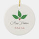 Decorate your Christmas tree with this ornament including a holly illustration a Merry Christmas text and Family Name. With its customisable texts, you could use for Xmas, New Year or as a gift!