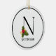 If your family monogram is N, then this ornament is for you! This beautiful design, trimmed with Holiday holly and ribbon tied into a bow, is offered in traditional colours of the season...and adorns this ornament, making it a timeless keepsake and fun addition to your holiday tree decor! Personalise with your family name. You can customise further, if you would like to change the background colour. This ornament also makes a wonderful Christmas gift! Happy Holidays!