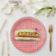 Hot dog on red and white gingham for 4th of July or any other patriotic holidays.