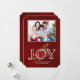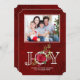 These delightful holiday cards feature bold, eye-catching typography embellished with a cluster of flowers and express a message of joy. The burgundy background has a muted snowflake pattern and a window for your favourite photo.
