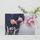 A beautiful Holiday photo card featuring your favorite photo on the front with the word "Joy" in a hand-lettered script font. Add three photos to the back and your custom note. Easily change the backside color to compliment your photos and style. The perfect card for newlyweds or families.