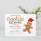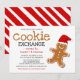 Simplistic child friendly christmas cookie exchange party invitation, featuring a classic white background, a tasty gingerbread man wearing a red Santa Claus hat and a festive template that is easily customized.