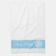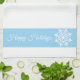 Holiday kitchen towel shown in white with a blue accent panel with a snowflake. Customise this item or buy as is.