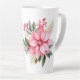 Holiday latte mug is shown with a festive poinsettia print.